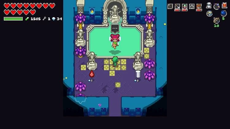 In Cadence of Hyrule können die Großen Feen, wenn sie angesprochen werden, Link heilen. Mit Diamanten kann man Upgrades für die aktuelle Waffe kaufen (siehe Bild).