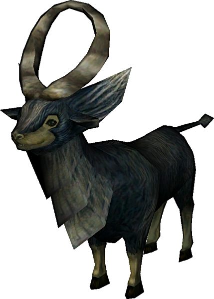 Las cabras en Twilight Princess tienen el pelaje azul oscuro, de un tono grisáceo; salvo en parte de la cara, las orejas, el cuello y las patas, donde el pelo se torna amarillento o blanquecino. El rasgo más destacable de estas cabras es sus pulida cornamenta, que forman una circunferencia cerrada ya que están unidos a pesar de que no parten del mismo lado de la cabeza. Poseen un carácter manso, y son fáciles de manejar. Sin embargo, si son atacadas por una de las armas de Link, se volverán hostiles y comenzarán a perseguir al joven a gran velocidad. Podrán ser detenidas si Link se sitúa enfrente de los animales cuando van a alcanzarle, les agarra de los cuernos fuertemente, y las voltea hacia un lado hasta que caigan al suelo. Si la operación no tiene éxito, embestirán al héroe, aunque este no perderá corazones por ello.