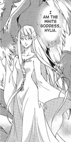 En el manga de Skyward Sword de Akira Himekawa cuando Link se está preparando para luchar contra el Heraldo y su ejército, la diosa Hylia, conocida en el manga como "Diosa Blanca", aparece en persona a lomos de un pelícaro rojo. En su encuentro, Link afirma que, aunque los humanos pueden parecer pequeños a los ojos de los dioses, hay algunos entre ellos que poseen un gran valor. Hylia reconoce la valentía y el honor incomparable del joven y lo proclama su héroe elegido. A continuación, le permite empuñar su arma legendaria traída por los dioses, la Espada Maestra. Sin embargo, el protagonista afirma que él no podía tocar una espada sagrada, pensando que es impuro porque él fue encarcelado durante años. A pesar de esto, Hylia dice que la Espada Maestra decidirá si él es impuro o no, y le pide que elija entre vengarse de la gente de la superficie que lo encarcelaron o salvar al mundo de su terrible destino. El héroe elegido decide que él siempre estará junto a sus amigos y acepta la Espada Maestra de la diosa.