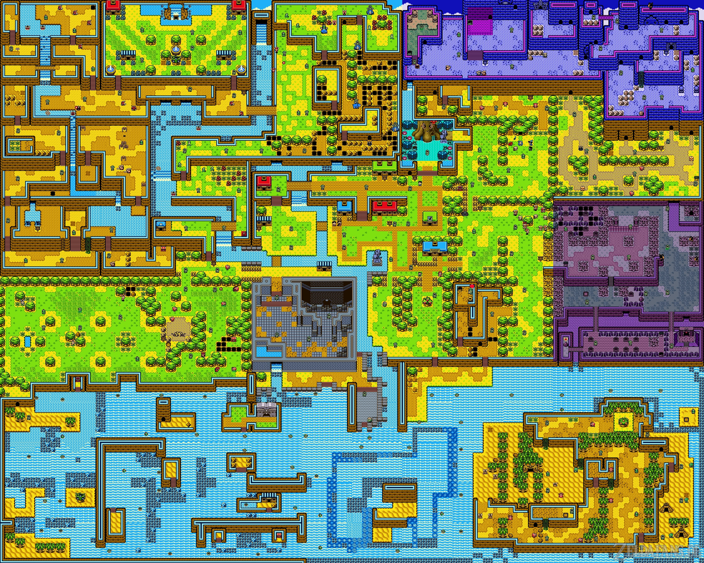 Al igual que su contraparte de la tierra Holodrum e incluso la tierra de Hyrule en sí, la geografía de Labrynna varía mucho de una región a otra. Las Cordillera Ondulada domina la región noreste de Labrynna. También se encuentran en la parte norte de Labrynna las colinas y picos escarpados de la Montaña Nuun que bordean la Cordillera Ondulada. En la esquina noroeste de Labrynna se encuentra los Picos Talu con sus manantiales y cascadas, así como la construcción Ciudad Simetría, una ciudad hermana de Ciudad Lynna. Al este de Ciudad Lynna se encuentra el Bosque del Tiempo, conocido por ser el hogar de muchos animales que hablan, y el espeluznante Cementerio Yoll, donde muchos residentes de Labrynna descansan después de fallecer. Mientras tanto, al oeste de Ciudad Lynna se encuentra los Bosques de las Hadas, un bosque que está encantado en el que los viajeros suelen perderse. Hacia el sur está el Mar de los Zora, la ubicación de muchos lugares diferentes como el Pueblo Zora, el confuso y violento Mar de las Tormentas, y la geográficamente interesante Isla Creciente (en forma de media luna). En el centro del país se encuentra la bulliciosa Ciudad Lynna y la enorme Torre Negra que puede ser vista desde toda la tierra.