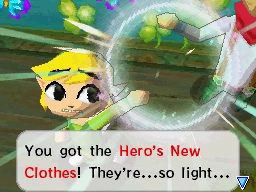 En este juego los nuevos ropajes forman parte de la secuencia de comercio. Son el primer objeto de la secuencia y las posee el hombre de las sonrisas. La primera vez que Link vaya a su barco y elimine a los monstruos, el hombre le preguntará si quiere un regalo normal o misterioso. Al responder "misterioso", Link recibe estas ropas. Sin embargo, si pide algo "normal", obtendrá un mapa del tesoro, aunque finalmente en ambos casos el hombre de las sonrisas dirá que se siente generoso y dará al joven héroe los dos regalos. Link debe entregarle los nuevos ropajes a Nyeve, ya que según él, son las ropas perfectas de un héroe. A cambio, Link recibe un caleidoscopio.