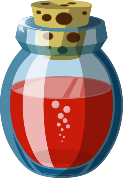 La poción roja es la primera poción disponible luego de pasar el primer nivel del Modo Leyenda, las Hordas del Mal, y restaura solamente 5 corazones. No es necesario obtener alguna Skulltula Dorada para desbloquear esta poción.