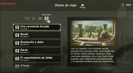 Link, uno de los elegidos, fue nombrado guarda personal de la princesa Zelda, de la familia real de Hyrule. Ambos intentan reproducir cierta ceremonia legendaria, tal y como Daruk había sugerido, pero Zelda parece apesadumbrada, y su expresión sombría revela sus sentimientos.