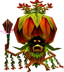 - Lo que lleva en la mano parece una Baba Deku en flor.