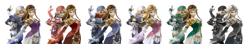 El diseño de Sheik está basado en los bocetos de éste para Twilight Princess que al final no se introdujo. Sheik tiene cambios mínimos con referencia a Super Smash Bros. Melee. Por otra parte la princesa Zelda, al igual que los otros personajes, es modificada con el diseño de The Legend of Zelda: Twilight Princess. Sus movimientos de combate son los mismos que Super Smash Bros. Melee. En combate Zelda puede transformarse en Sheik y viceversa. Curiosamente, uno de los colores de Zelda elegibles se parece a la Zelda de Ocarina of Time.
