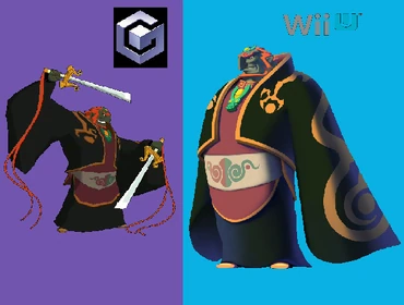 The outfit consists of a blue v-neck shirt, with a red Hylian crest on it, brown pants, and brown shoes. Just like how being paired with Navi made him a "true Kokiri", this clothing set makes him a "true Hylian".