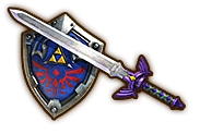 | Épée du Combattant · Excalibur · Épée Magique · Épée d'Or · Tenue du Héros · Côte de Maille Bleue · Côte de Maille Rouge · Bouclier du Combattant · Bouclier Rouge · Bouclier Miroir · Bottes de Pégase · Gant de la Puissance · Moufle du Titan · Palmes Zora · Perle de Lune |
