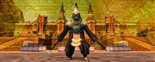 Cependant, Xanto possède une autre épée que celles avec lesquelles il combat Link : il s'agit de l'épée qu'il plante dans les ossements d'Humbaba, Antique Terreur Ressuscitée (image à gauche), le boss de la tour du Jugement (et qui est son point faible). Cette épée est magique, puisqu'elle permet à Xanto de ressusciter Humbaba.