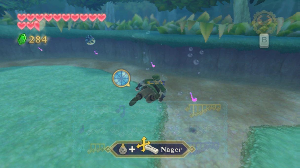 Sous l'eau, on peut voir des bulles d'air, permettant à Link de reprendre son souffle, et des bulles voilettes, ayant l'effet inverse.