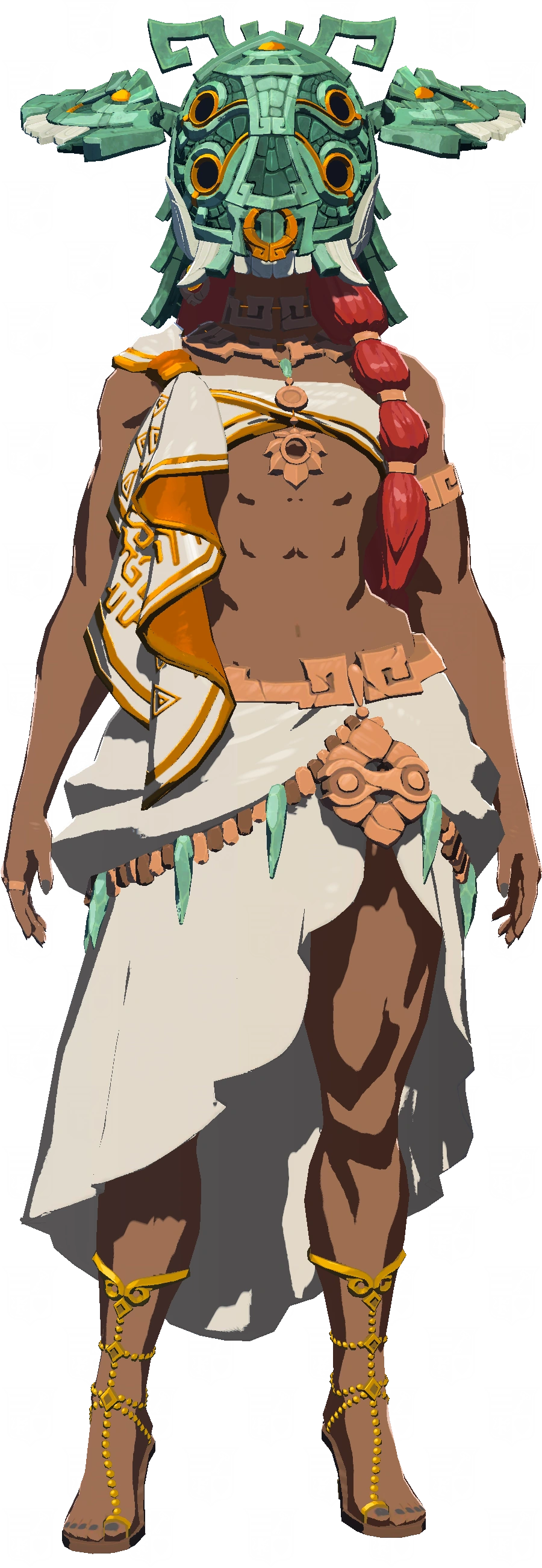 - Dans Tears of the Kingdom, bien qu'on ne la voit jamais sans son masque, son visage est tout de même entièrement modélisé. On peux voir que son apparence est légèrement différente de celle qu'elle à dans Les Chroniques du sceau.