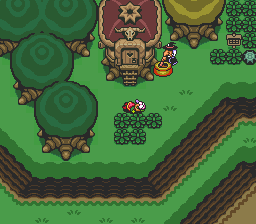 Le héros de la Lumière se réveille chez Aginah, au début du jeu. Ce dernier explique la situation du royaume, et informe le héros qu'il lui faut aller au palais de l'Est pour trouver une épée et un bouclier. Il lui remet également une abeille d'Or à utiliser contre les monstres, un ocarina qui permet de se rendre ailleurs grâce à un oiseau ou de revenir à l'entrée d'un donjon, ainsi qu'un filet à papillons et une lanterne (il est probable que ces objets aient été ceux de Link auparavant). De même, un voyant, déboule chez Aginah, pour expliquer au héros qu'elle lui donnera des conseils dans sa quête.