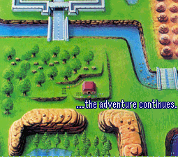 La princesse l'aide alors à lire ce qui est inscrit grâce au livre de Mudora: les flèches d'Argent apparaissent du ciel, et un vortex vers un autre monde (probablement le monde des Ténèbres ou la terre d'Or) s'ouvre. Le héros y pénètre seul, et arrive en face de la tour de Ganon, bloquée par une barrière électrique. Il doit donc avoir préalablement mis la main sur l'épée Excalibur cachée au plus profond des bois Perdus, pour pouvoir entrer dans la tour. Il part affronter Ganon, et suite à sa victoire permise par les flèches d'argent, il retourne placer Excalibur dans son socle, accompagné de la princesse Zelda et d'Aginah. Après cela, il disparaît dans un halo de lumière, tandis ce que ses deux compagnons repartent d'où ils venaient.