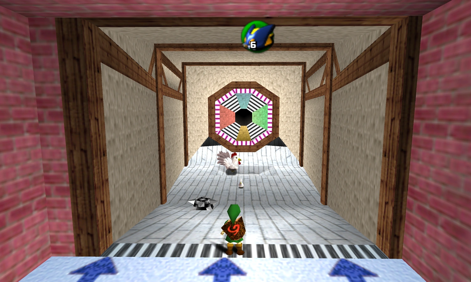 Les poules ne s'énervent pas si elles sont touchées, dans ce jeu, mais elles restent immobiles pendant quelques instants. De plus, Link n'a le droit de lancer que 10 missiles teigneux. S'il ne parvient pas à viser les trois zones noires avec ces missiles, il perd donc le jeu et ne remporte rien. Les prix, choisis au hasard, inclus un quart de cœur, un plus gros sac de Bombes, des bombes, des missiles teigneux, ou encore 50 rubis.
