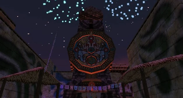 La tour de l'horloge ouvre ses portes le jour du carnaval, ce qui marque le début des festivités. Une fois la nuit venue, les habitants ont pour coutume de chanter en haut de la tour des paroles anciennes pour invoquer des dieux. On comprend alors pourquoi Skull Kid et le masque de Majora vont en haut de la tour pour invoquer les dieux et faire tomber la lune. Le carnaval est destiné aux dieux dans l'unique but de protéger les peuples de Termina.