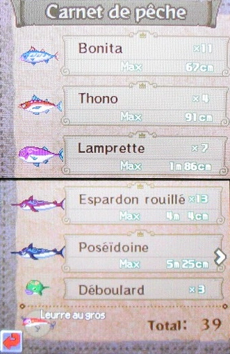 Le carnet de pêche est situé dans le menu Démarrer, et il montre une image du type de poissons pêchés, combien ont été capturés et la plus grande taille du poisson capturé.