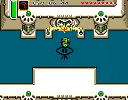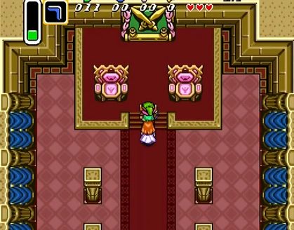 Après qu'Agahnim ait été vaincu, Link se retrouve téléporté au Monde des Ténèbres dès qu'il franchit le portail du château d'Hyrule; il ne peut plus rentrer dans la cour.