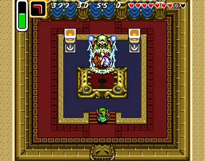 Une fois arrivé au dernier étage, Link entrera dans la salle de cérémonie et assistera impuissant au transfert de Zelda dans le monde des Ténèbres. Agahnim a attendu plus longtemps, pour pouvoir le faire sous les yeux de Link. Suite à quoi, Link suivra Agahnim en rejoignant une nouvelle salle cachée derrière les rideaux.