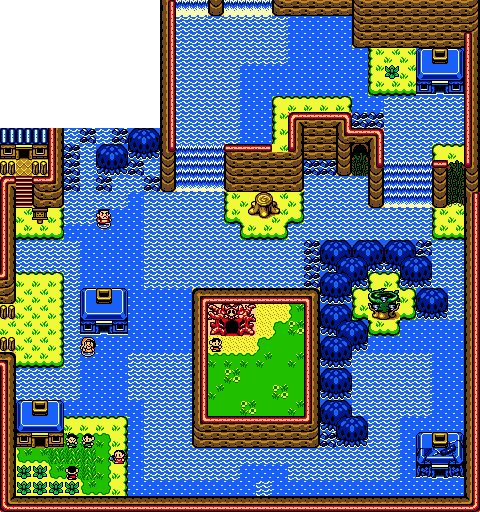 Ingo habite ici, dans une maison au nord-ouest. Link peut aller le voir pour lui échanger un vase Goron contre du poisson. De plus, à l'est de sa maison, se trouve un passage secret sous l'eau qui achemine directement au Mt. Cocotte et qui est empruntable après obtention des palmes.