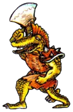 Un guerrier-alligator qui attaque avec une hache. Le bouclier de Link ne peut le protéger de la hache. |