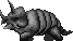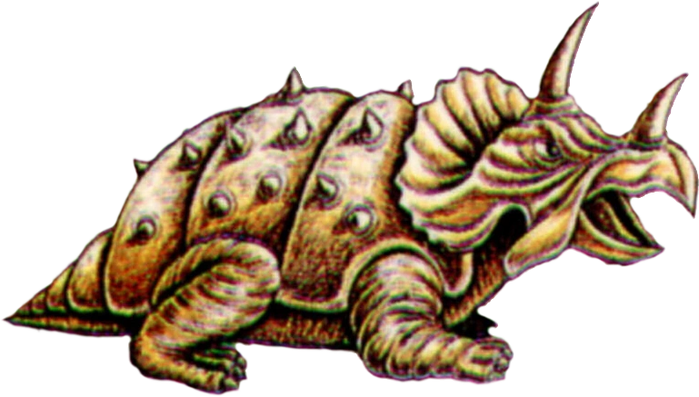 Un rhinocéros géant avec peu de pouvoir d'attaque. Il repousse les attaques avec son épaisse carcasse. |