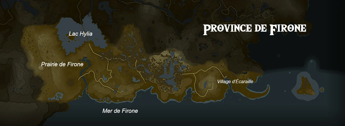 La province de Firone se trouve à l'extrême Sud-Est d'Hyrule. La province de Firone est majoritairement composée de plaines et de forêts, même s'il existe un village dans cette province, le village d'Écaraille. Au sud-est, la mer occupe aussi une grande superficie. La province n'est peuplée que par des Hyliens qui ressemblent aux peuples Austronésiens de l'Océanie.
