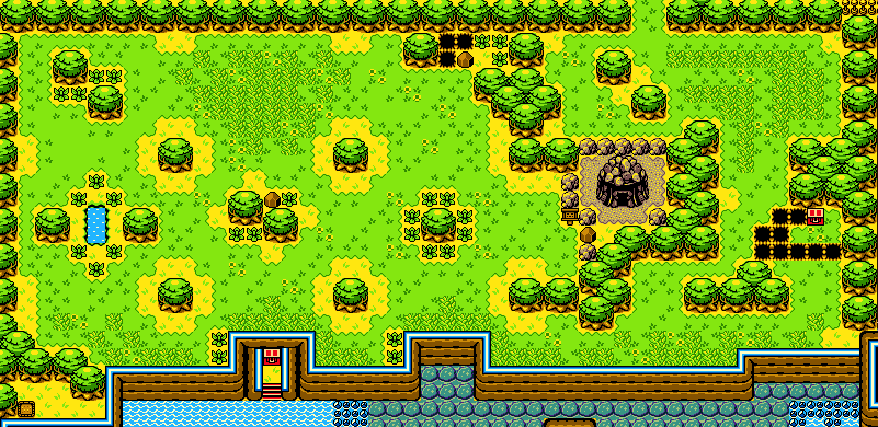 Un terrain pour planter une graine Gasha est accessible grâce au chant des Flux. Il est également possible de trouver quelques rubis dans un coffre, avec l'aide de la plume de Roc. Un dernier coffre peut être ouvert, à partir du moment où Link peut accéder au village Zora. En jeu lié, une grande Fée apparaîtra à l'emplacement de l'entrée du donjon Aile, et donnera à Link un anneau, après avoir écouté son secret.