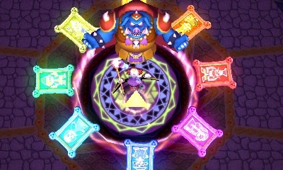 Ganon n'apparaît pas directement mais il est mentionné dans le prologue et la marionnette de Ganondorf, Alter-Ganon, lui ressemble.