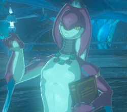 Link rencontre Mébol dans le domaine Zora. Elle est la secrétaire particulière de la famille royale. Elle parle à Link de la statue de Mipha qui se trouve au milieu du domaine. Elle explique qu'elle était la dernière prodige Zora.