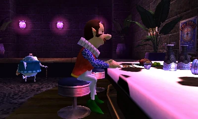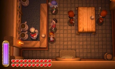 Dans le bar, Link peut parler à un habitué et à des soldats d'Hyrule. Le troubadour et le petit flûtiste peuvent lui jouer des musiques de la série Zelda pour dix rubis.