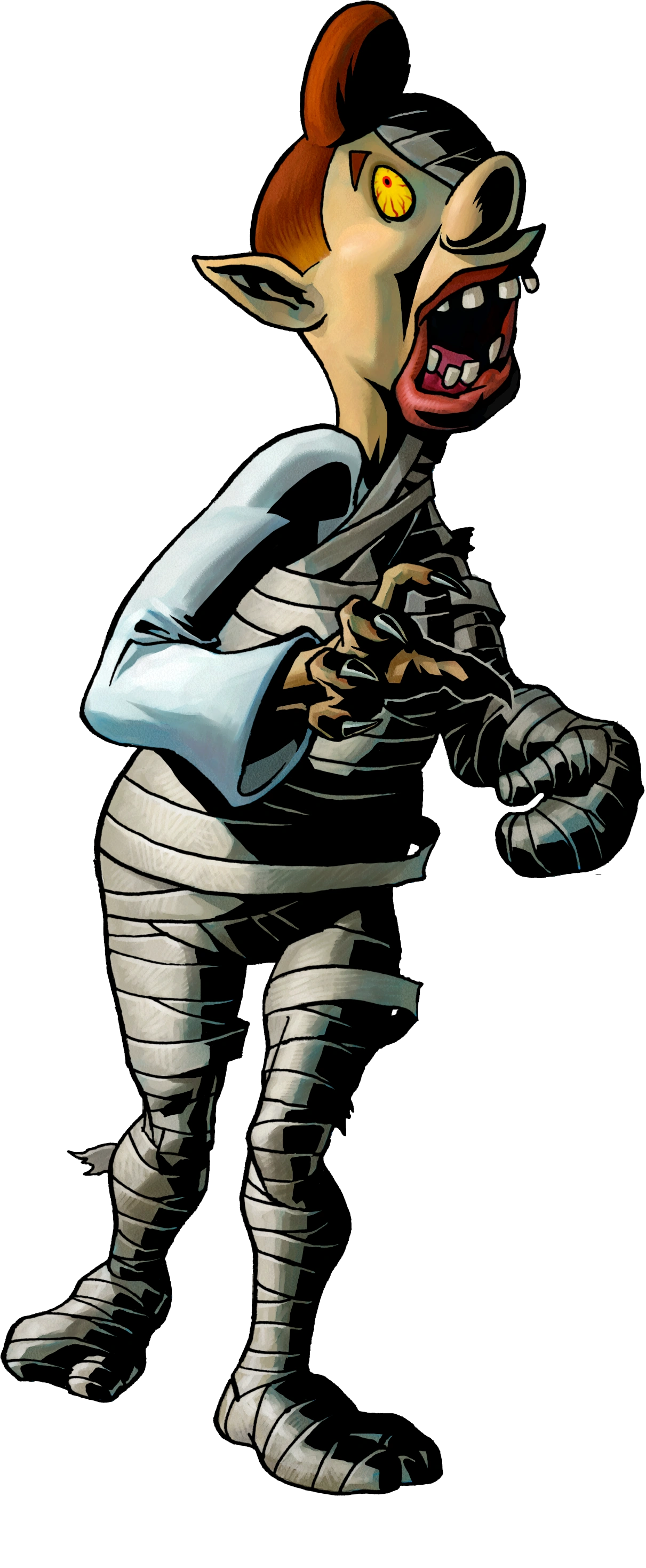 - Une fois la malédiction levée, Link peut parler au père de Pamela avec le masque de la Momie. Ce dernier voudra alors voir le masque, mais, sur conseil de Pamela, Link refusera de le lui donner.