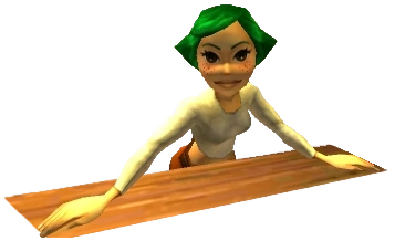 La réceptionniste, dont le nom n'est jamais appris, est une femme aux cheveux verts dans Majora's Mask.