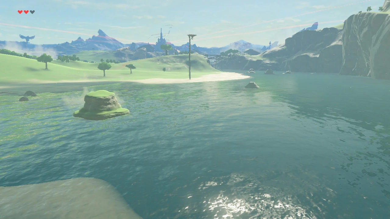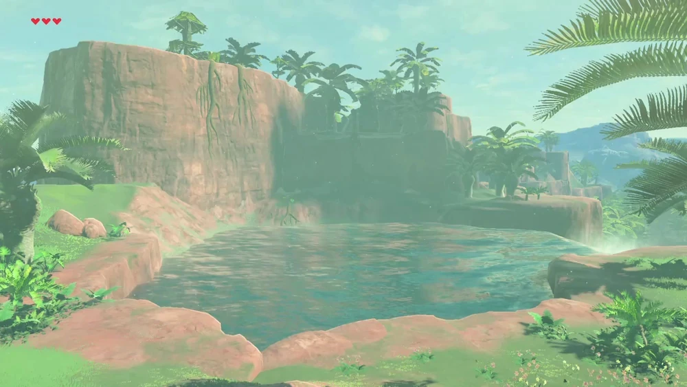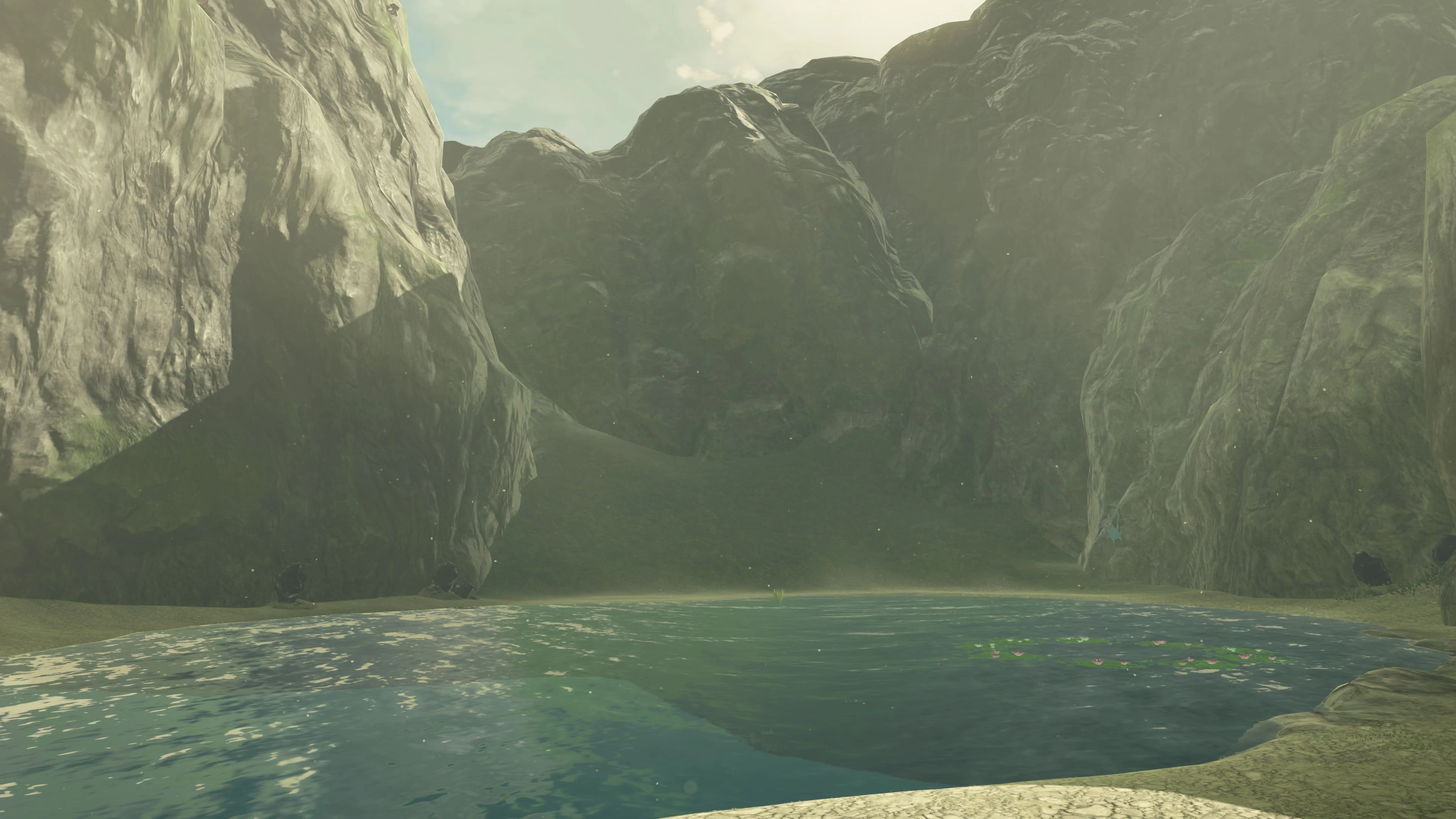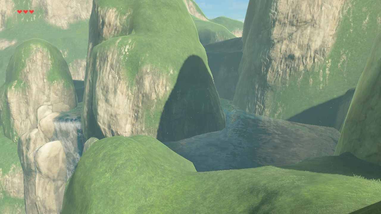 Le lac à l'arrière de la maison d'Impa prend sa source dans la chaîne de Bonooru.
