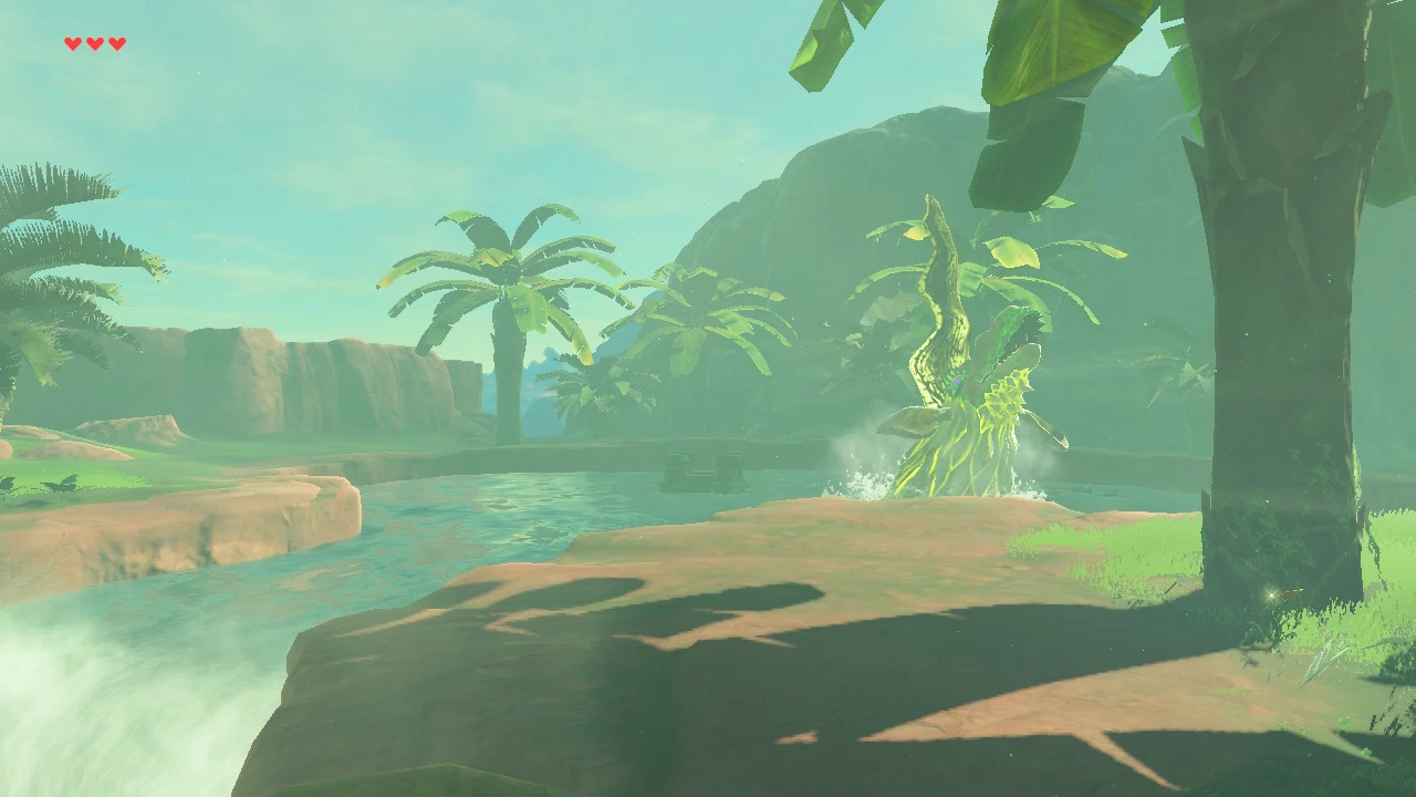 Le plateau de Kamas se situe au sud-ouest du mont Faroria. Ici pousse la végétation tropicale typique de la forêt de Firone. Un Hinox dort au milieu des arbres.