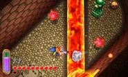 L'élément principal de ce donjon est la lave, l'utilisation de la baguette de glace est donc indispensable afin de geler les mares et les colonnes de lave pour se déplacer. Il existe des plaques de téléportation un peu partout dans le donjon qui permettent d'atteindre les lieux où se trouvent des coffres et des clés. On retrouve comme ennemis des Sorciers (rouges), des Gibdos, des Sentinelles ou des Swamolas. Par ailleurs, il faut vaincre tous les sorciers dans l'une des salles principales afin d'atteindre un coffre contenant le Bouclier d'Hylia. Il est également possible de sortir du donjon, au nord-est de l'entrée, là où se trouvent trois fées. Le boss est Grinexx et une fois qu'il l'aura battu, Link pourra libérer l'un des sages qui n'est autre qu'Impa.