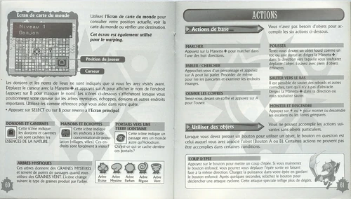 - La carte, permettant, par pression de la touche Select, d'afficher une Carte du Donjon|Carte complète du donjon, indiquant par une case chaque salle. Celles traversées par Link sont colorées en bleu, les autres sont en noir. Une icône représentant le visage de Link montre dans quelle pièce il se trouve.