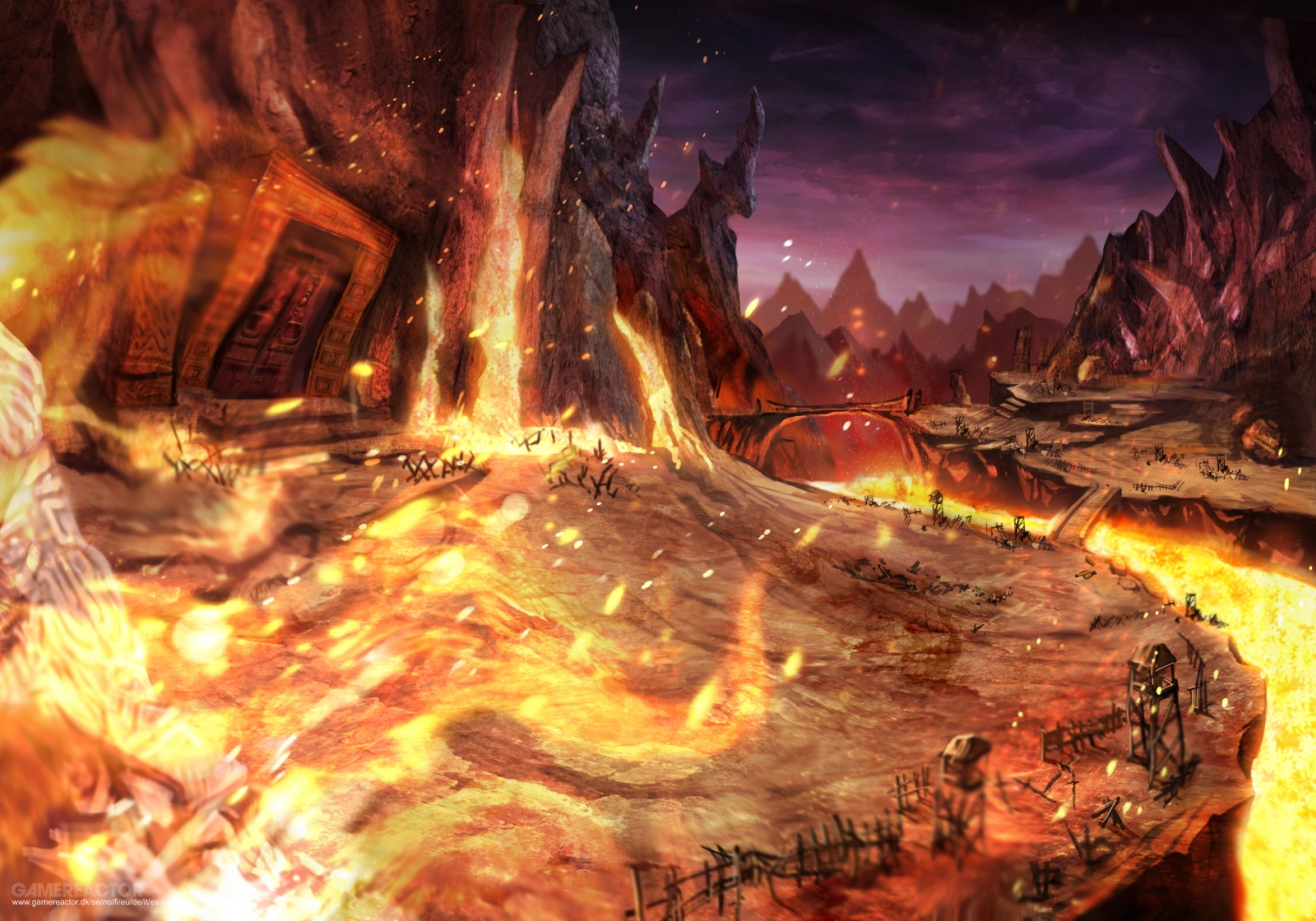 C'est la première partie de l'exploration. Link est amené à parcourir un long chemin de lave et de chaleur, aidé par les Mogmas, afin d'arriver au temple de la Terre, le deuxième donjon du jeu. Il doit évoluer en utilisant les fleurs bombes à bon escient.