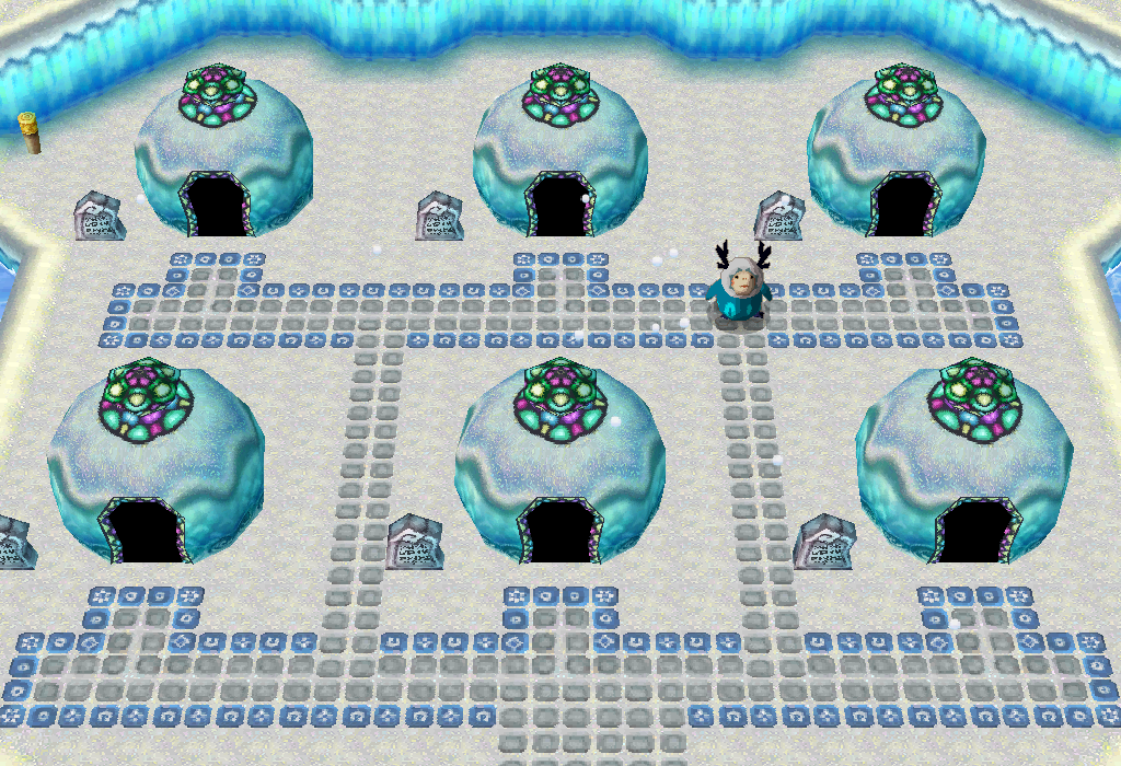 The houses are lined up in two rows of three, with Dobo, Kumu, and Fofo living in the front three houses, and Gumo, Aroo, and Mazo living in the back three. Each of the Anouki living in the Anouki Estates will tell Link something about one of the other residents as he attempts to solve the mystery. In addition to the Anouki staying in their houses, Link can also get hints from an Anouki wandering around the Estates named Hintobo, but at the price of 100 Rupees.