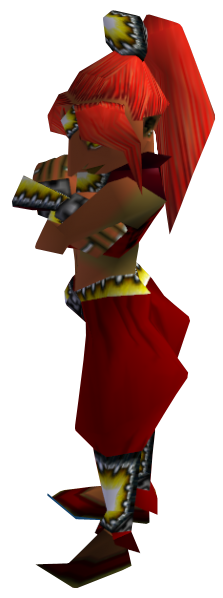 Aveil is the leader of the Gerudo Pirates. She has a room deep inside the Pirates' Fortress that is filled with all kinds of treasures and luxuries that the Pirates have stolen, including a Zora Egg and the Hookshot.[2]