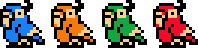 Concept art of the Common Sparrow, Rainbow Sparrow, Blue Sparrow and Red Sparrow for Breath of the Wild.