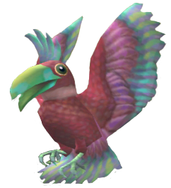 In Tri Force Heroes, pink, yellow, and a rarer blue bird appear in the town of Hytopia. They are slightly smaller than the variety found in A Link Between Worlds. They tend to flock in small groups and will fly away when approached. Mimi believes that if a picture of a blue bird is taken, everyone who sees the picture will be happy.[3] However, there is no significance to this. The Street Merchant will pay Link more for Materials if he has seen a blue bird.