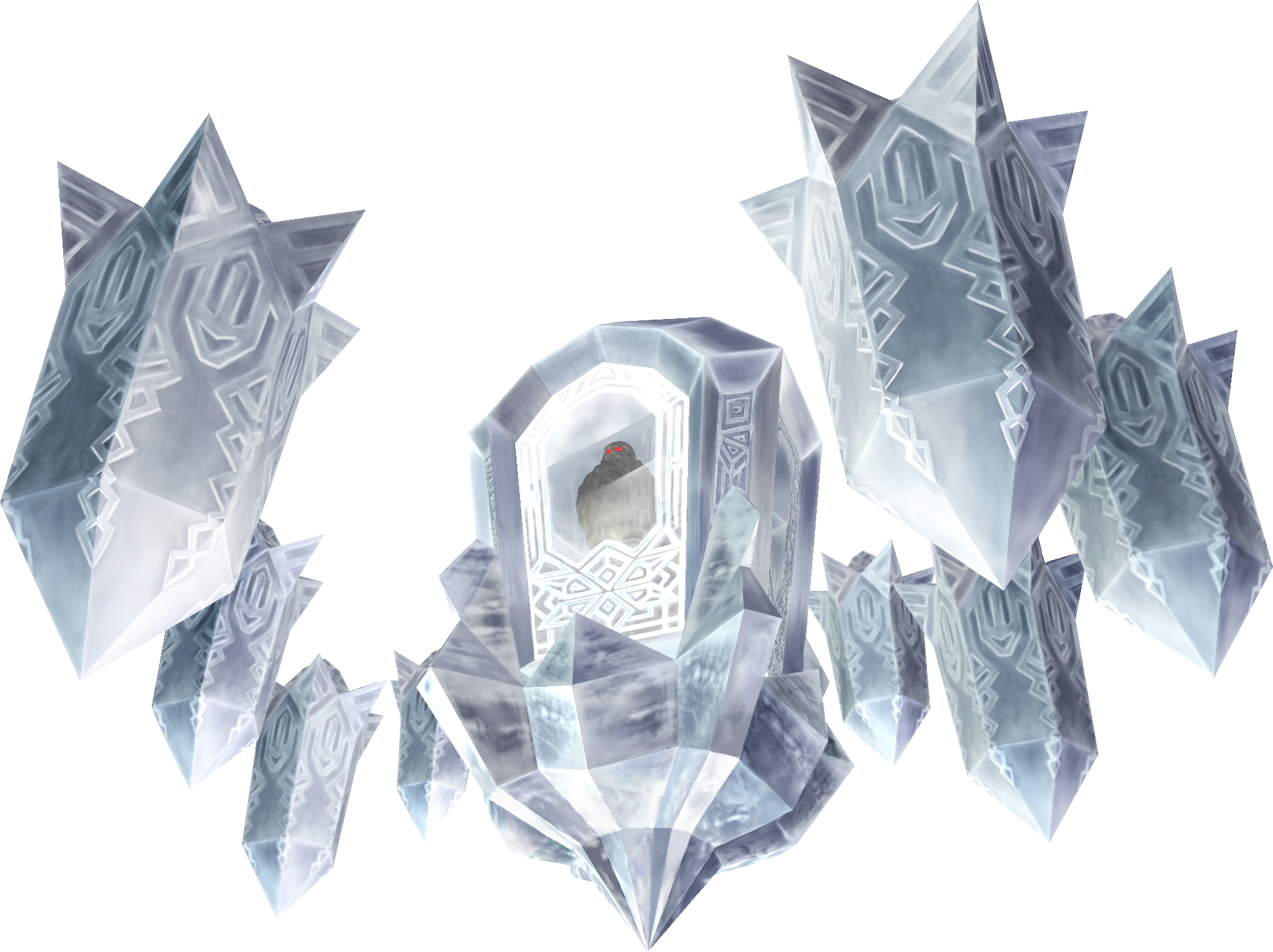 Blizzeta will then rise into the air and let out a scream, encasing herself within another ice barrier surrounded by huge ice spikes. The camera switches to an overhead view, where reflections of Blizzeta and the ice spikes can be seen in the icy floor as they hover over Link and attempt to crash down on him. After the ice spikes fall, Link can break them with the Ball and Chain, sometimes releasing recovery Hearts. They can also form a circle around Link in order to trap him for Blizzeta's attack. When she falls, Link can attack her with the Ball and Chain as well.