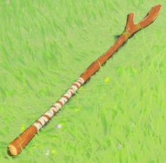 A spear recklessly carved from a tree branch. Useful for skewering fish and meat, which can then be cooked over a flame. If it's close to breaking, consider throwing it." — Inventory (Breath of the Wild) - ↑ "Boko Spear