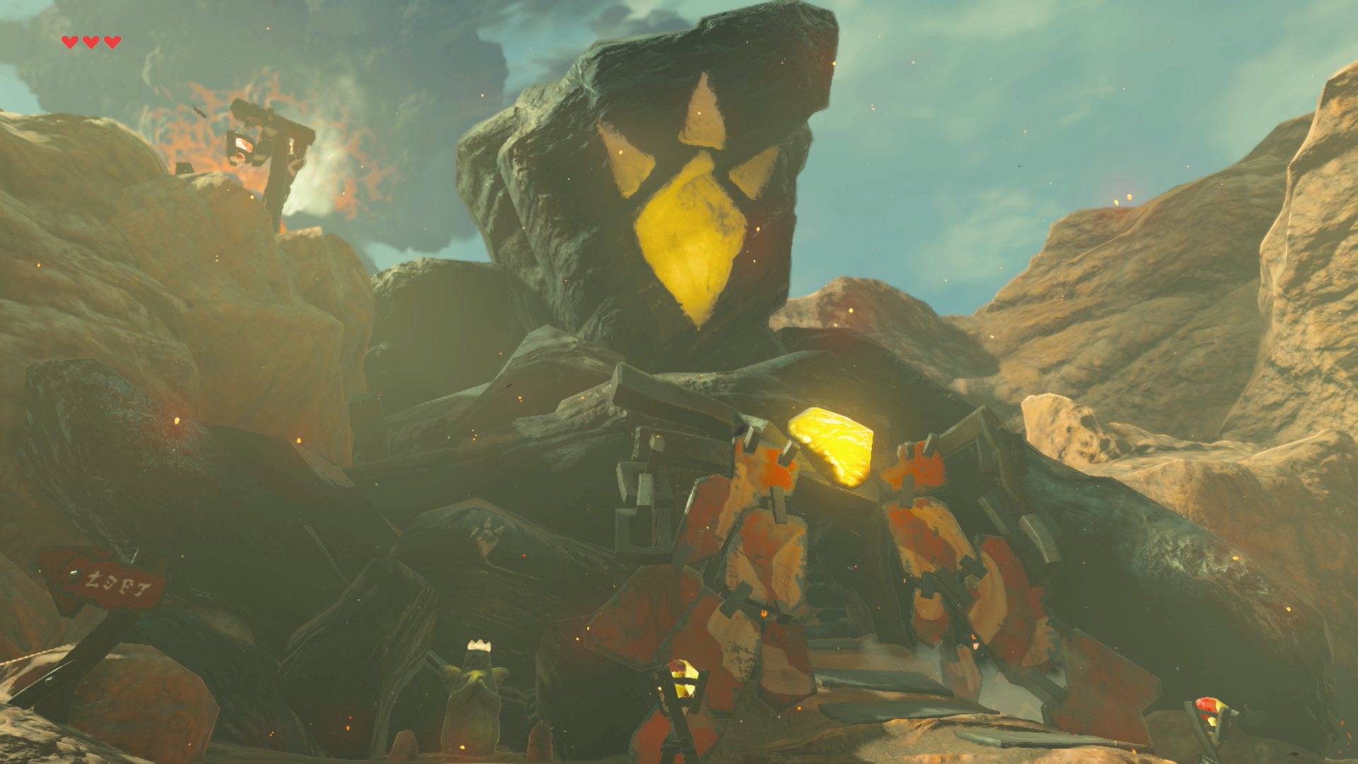 After Divine Beast Vah Rudania has been calmed, Yunobo will bring Link to the Boss's House at Bludo's request.[12] To thank him,[13] Bludo allows Link to keep the contents of a Treasure Chest found inside his House.[14] Inside, Link can retrieve the Boulder Breaker.