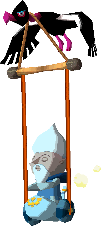 - ↑ "The nerve! There I was, flying high in the sky, unwinding... Then you play the Song of Birds, and I come crashing down! Don't you know that song has the power to call birds to you? [...] Hmph. Let me guess--you want me to restore the Spirit Tracks, don't you? I was hoping to relax a little longer, but fine. Take me to the Ocean Sanctuary on your train." — Carben (Spirit Tracks)
