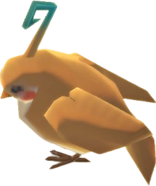 Chirris are small Birds that can be found on the Surface in places such as Faron Woods. There are three varieties: yellow, orange and blue. Link can sneak up on them and catch them with his Bug Net to obtain a Bird Feather. If the caught Chirri is blue, he will receive a Blue Bird Feather instead.