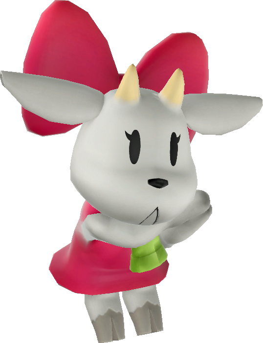 Christine is a goat who lives in the Animal Village. She loves eating paper and corresponds with Mr. Write from Mabe Village.[2] When Link talks to her for the first time, Christine says to him that the proper etiquette is to give flowers when first meeting a lady.[3] During the game's Trading Quest, in exchange for a Hibiscus flower, Christine gives Link a Letter that must be delivered to Mr. Write.[4] When the Letter is delivered, it is revealed that it is apparently a love letter, and that Christine has enclosed a photograph.[5] Although Mr. Write believes the photo to be of Christine herself, it is actually an image of Princess Peach from the Mario franchise.[6]