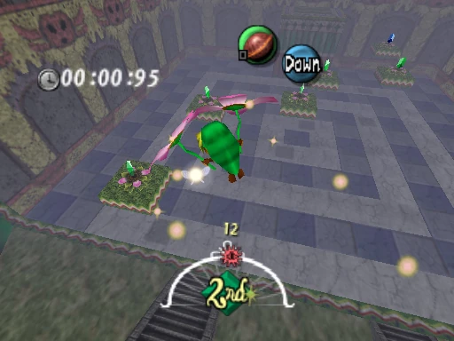 The speed of the platforms increase each day. On the First Day, the platforms move vertically. On the Second Day, they move horizontally around the area's center. On the Final Day, some move vertically and others move horizontally, but all of them will move faster. If Link sets a new record for three days straight, he ultimately wins a Piece of Heart, although he is also barred from participating again.[3]