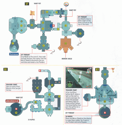 It is located leagues beneath the Great Sea, directly below Headstone Island, in the now-sunken realm of Hyrule.[2] The main item obtained is the Mirror Shield and its boss is Jalhalla.