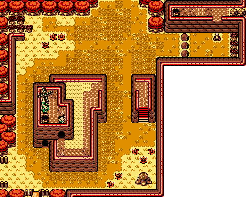 At the beginning of Link's adventure, the suburbs are blocked by several saplings. Using Ember Seeds, he can burn these out of the way and gain access to the suburbs.[1] The only notable landmark in the area is the Windmill, which sits on a steep hill in the center of the area. Link can enter the hill through an opening at its foot. The interior appears to be fully furnished, with staircases leading to the top where Guru-Guru and the Windmill are located. There is also a second entrance which can only be reached during winter. This leads to an unfurnished section of the cave which houses a Piece of Heart.[2]