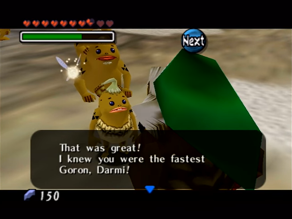 - "That was great! I knew you were the fastest Goron, Darmi! I was sure you'd get first place!"